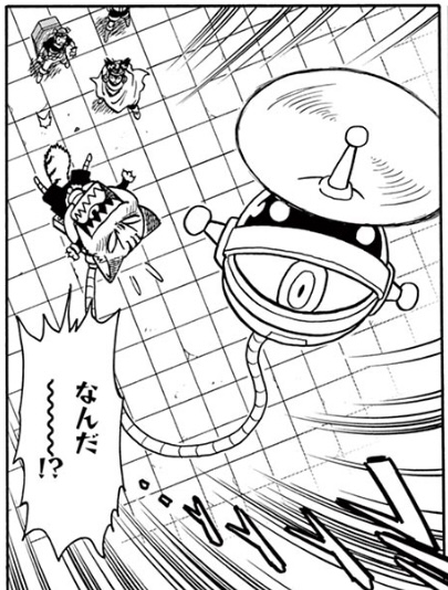 1枚目は、第2回 次の王様だ〜れだ大会の際に、参加者を島へと運んだドローンです。2枚目の、Dr.フォアグラーがピザの斜塔で使用していた浮遊する監視ロボにそっくりです。